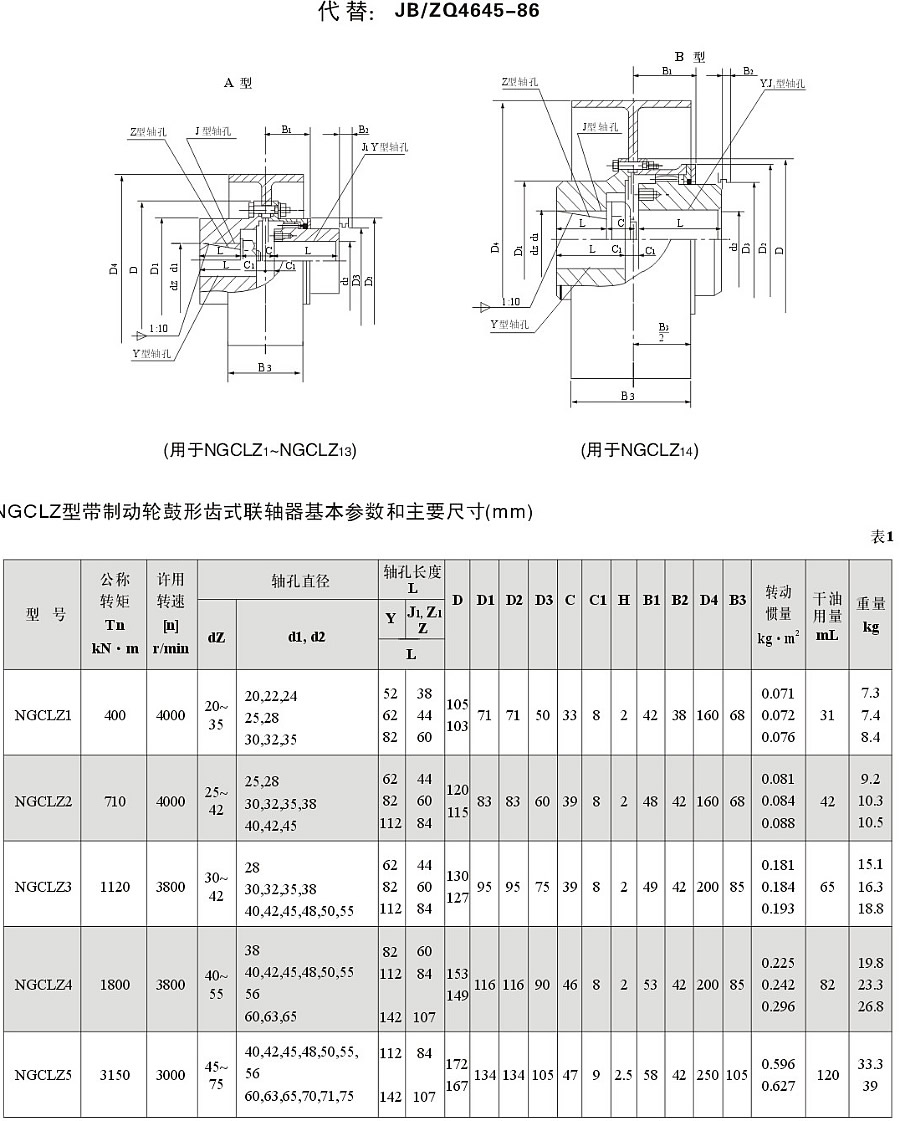 NGCLZ型帶制動輪鼓形齒式聯軸器 JBZQ 4645-2006
