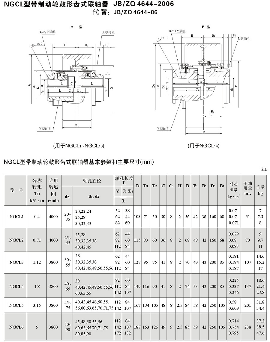NGCL型帶制動輪鼓形齒式聯軸器 JBZQ 4644-2006